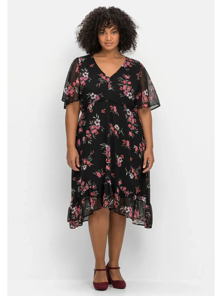 Шифоновое платье sheego by Joe Browns "Большие размеры" с цветочным принтом и рукавами-крылышками, черный