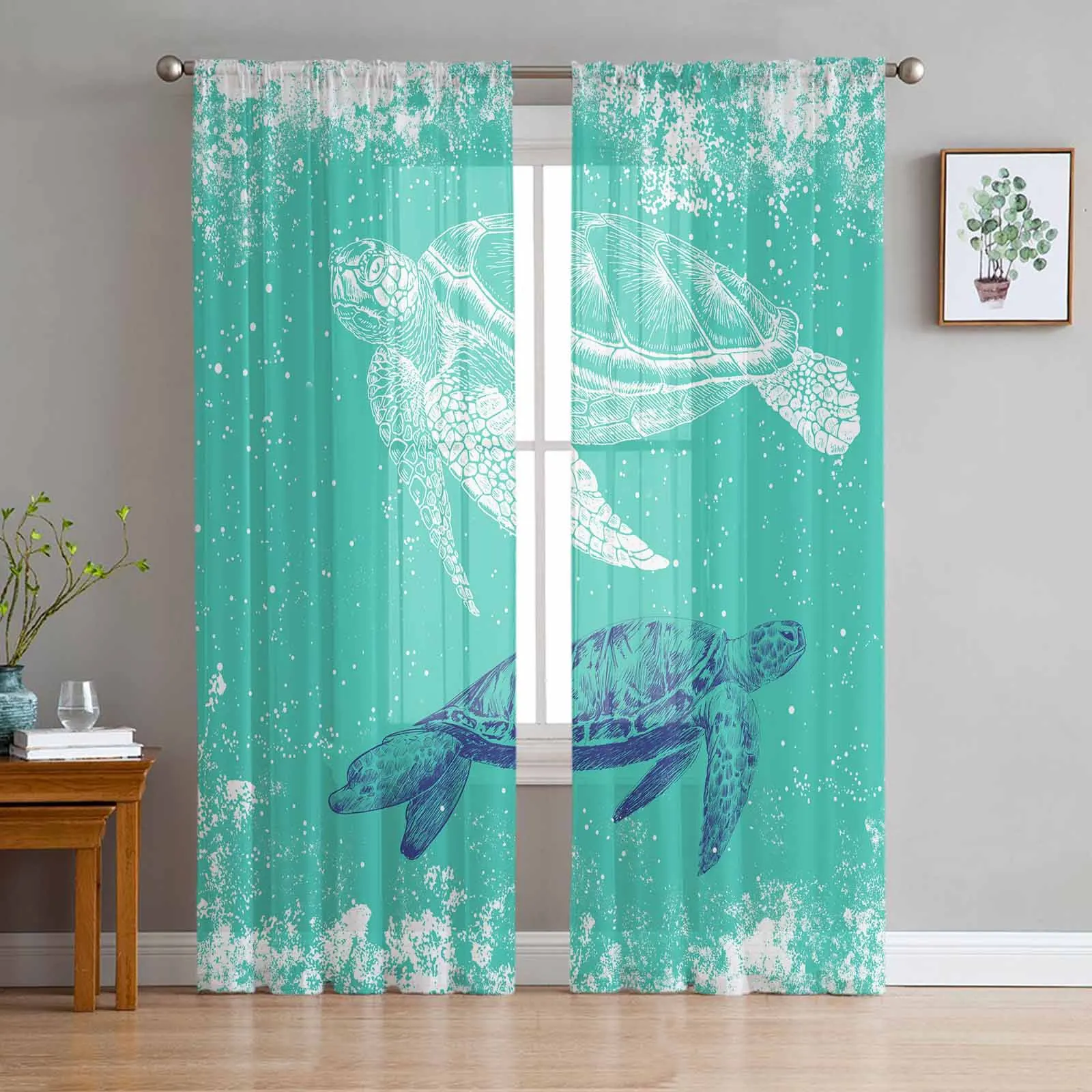 Шифоновые прозрачные шторы с зеленой черепашкой, летние снежинки для гостиной, спальни, украшение для дома, оконная вуаль, тюлевые занавески