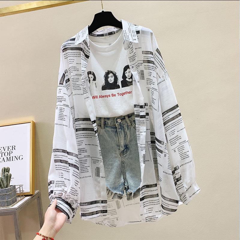 Шифоновый кардиган, солнцезащитная одежда, женская летняя свободная крутая модная тонкая универсальная солнцезащитная рубашка с длинными рукавами S чёрный