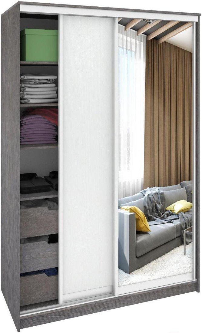 Шкаф-купе Кортекс-мебель Сенатор ШК10 Классика ДСП с зеркалом (береза+белый)