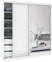 шкаф-купе, для жилой комнаты/для прихожей/для спальни, двухдверный, наполнение комбинированное, зеркало, цвет: белый, 205x65x221.6 см