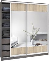 шкаф-купе, для жилой комнаты/для спальни, двухдверный, наполнение комбинированное, зеркало, цвет: дерево светлое, 205x45x221.6 см