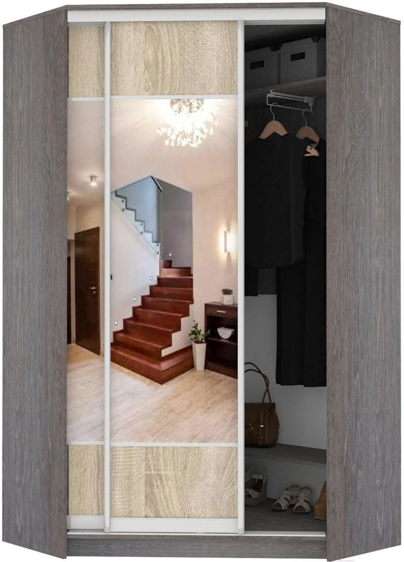 Шкаф-купе Кортекс-мебель Сенатор ШК30 Геометрия ДСП с зеркалом (береза/дуб сонома)