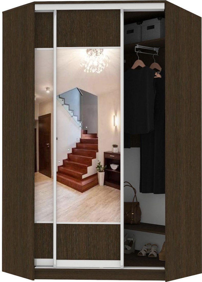 шкаф-купе, для жилой комнаты/для прихожей/для спальни, двухдверный, наполнение комбинированное, зеркало, цвет: дерево темное/коричневый, 120x120x221.6 см
