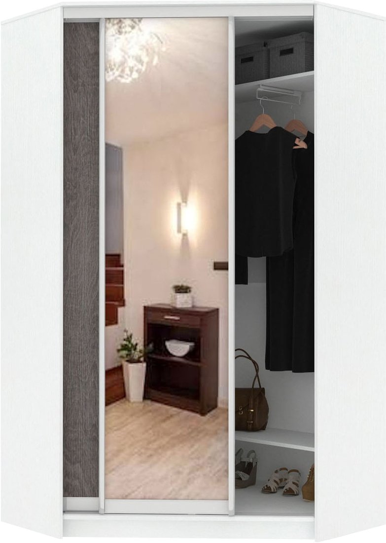 шкаф-купе, для жилой комнаты/для прихожей/для спальни, двухдверный, наполнение комбинированное, зеркало, цвет: белый/дерево темное/серый, 120x120x221.6 см