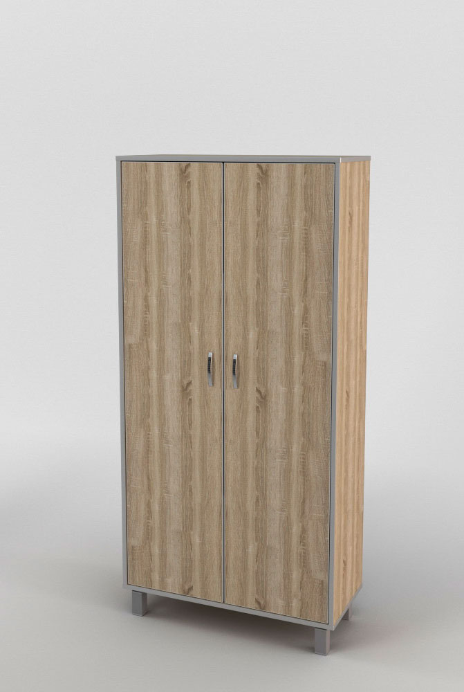 Шкаф пенал двухдверный распашной в спальню из ДСП Кромка ПВХ ШС-837 Менеджер Тиса мебель Дуб сонома/Серый