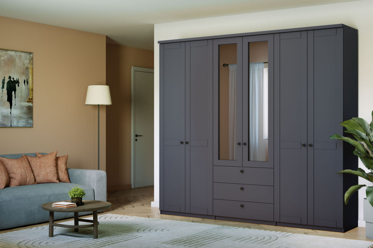 Шкаф распашной София РАХ-14 МДФ Графит с зеркалом шестидверный 240х230х60 Мегамебель, Серый