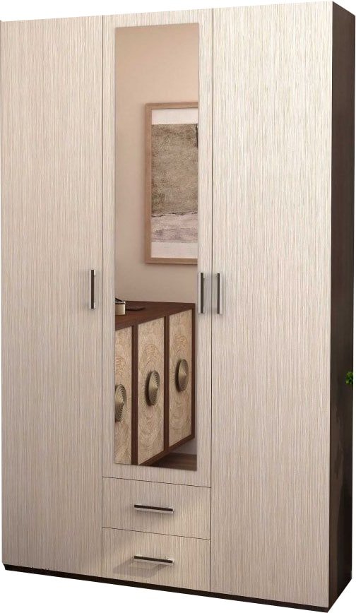 шкаф распашной, для спальни, трехдверный, наполнение комбинированное, зеркало, цвет: бежевый/коричневый, 120x49.6x220 см