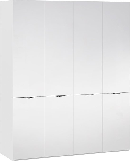 шкаф распашной, для жилой комнаты/для прихожей/для спальни, четырехдверный, наполнение платяное, зеркало, 3 полки, цвет: белый, 179.5x58x217.1 см
