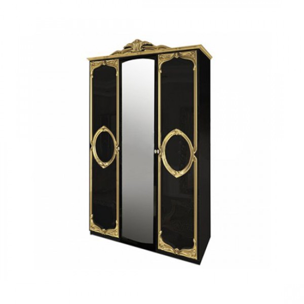 [html]Шкаф распашной с зеркалом в спальню, в прихожую из ДСП и МДФ Реджина Черная 3Д RG-13-BG MiroMark черный/золотистыйРоскошный распашной шкаф с зеркалом Реджина Черная 3Д MiroMark - элемент модульной системы Реджина Черная от известного производителя из Украины. Корпус шкафа произведен из высококачественного мебельного ДСП, фасад - из МДФ. Представлен в цветах - черный и золотистый. Двери шкафа украшены декоративной золотой резьбой. Вместительный трехдверный шкаф оснащен отделами со штангами для удобного хранения платьев и верхней одежды и полками для мелких вещей.Спальный гарнитур Реджина Черная MiroMark создан для тех, кто ценит изысканные и элегантные вещи в современном интерьере. С его помощью Ваша спальня станет настоящим произведением искусства. Оригинальный и необычный фасад данного комплекта, золотые декоративные элементы, глянцевая благородная поверхность – создают богатый, эстетический, гармоничный, красивый и элегантный дизайн Вашей спальни.Характеристики шкафа:Производитель: MiroMarkСтрана производитель: УкраинаАртикул: RG-13-BGТип: ШкафТип шкафа: линейный (прямой)Тип фасада шкафа: прямойКоличество створок (дверей): 3Количество зеркал: 1Количество выдвижных ящиков: 0 (шт.)Цвет (оттенок) мебели: черный/золотистыйСостояние: НовоеМатериал изготовления шкафа:Корпус: ДСПФасад: МДФ, зеркалоЦвет:Корпус: черныйФасад: черный/золотистыйГабаритные размеры шкафа:Ширина шкафа, мм: 1450Глубина шкафа, мм: 595Высота шкафа, мм: 2320[/html]