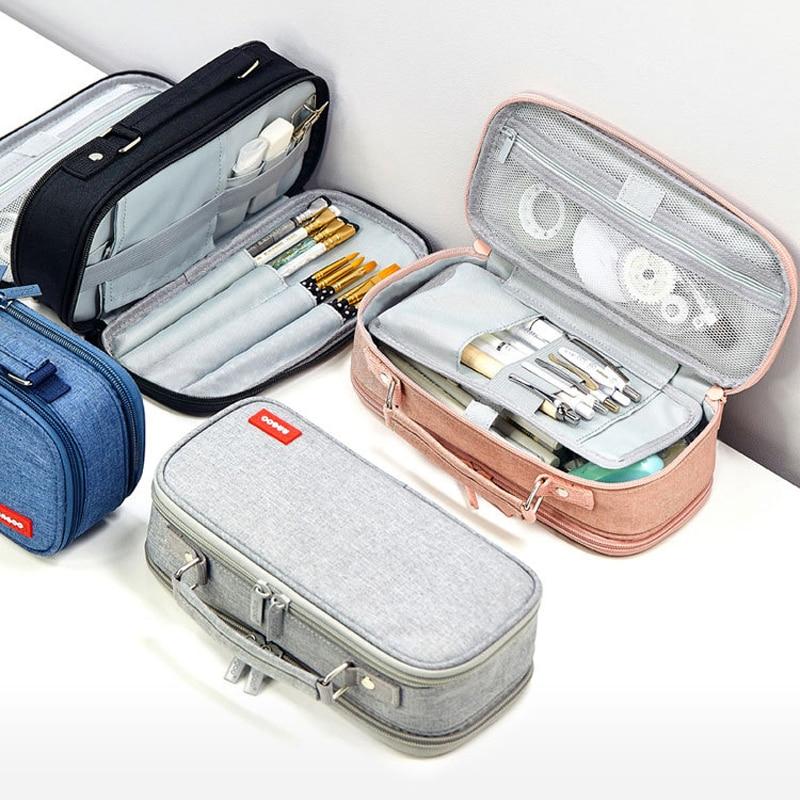 Школьный детский холщовый двухслойный пенал, большая вместительная сумка для макияжа, коробка для ручек, сумки, канцелярские принадлежности