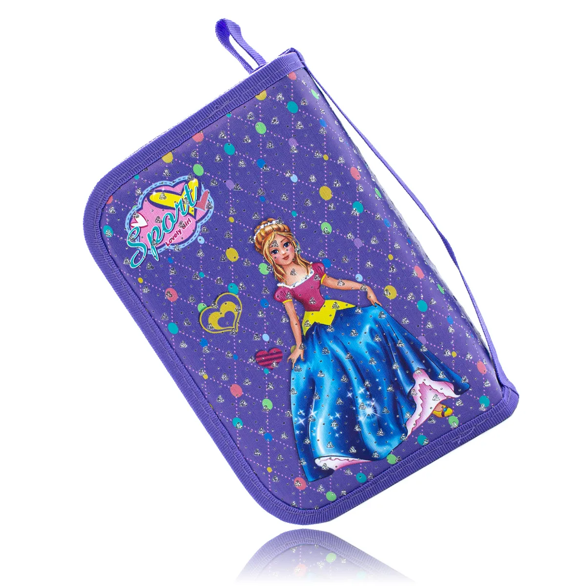 Школьный пенал MC BASIR для девочек "Принцессы Диснея" с 2-мя отделениями, цвет фиолетовый, на молнии