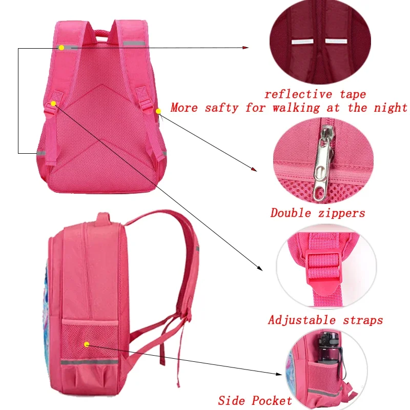 Школьный рюкзак для девочек с карманом на двойной молнии, розовые школьные сумки с героями мультфильмов, прочные детские сумки 16 дюймов для школьников