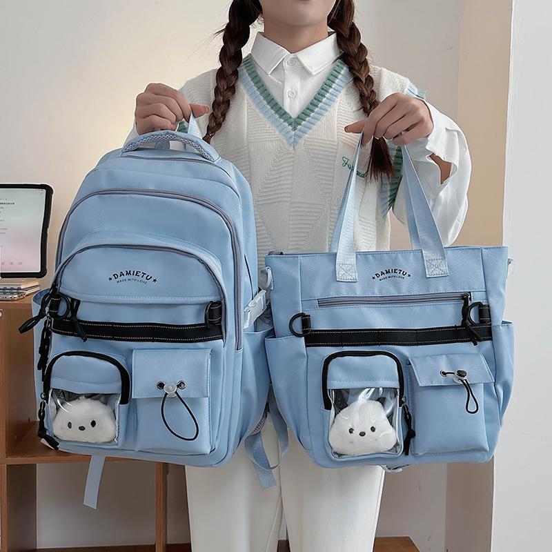 Школьный рюкзак для ученицы средней школы, женский, большой вместимости, простой рюкзак для ученика средней школы, легкий вес для ученика начальной школы синий