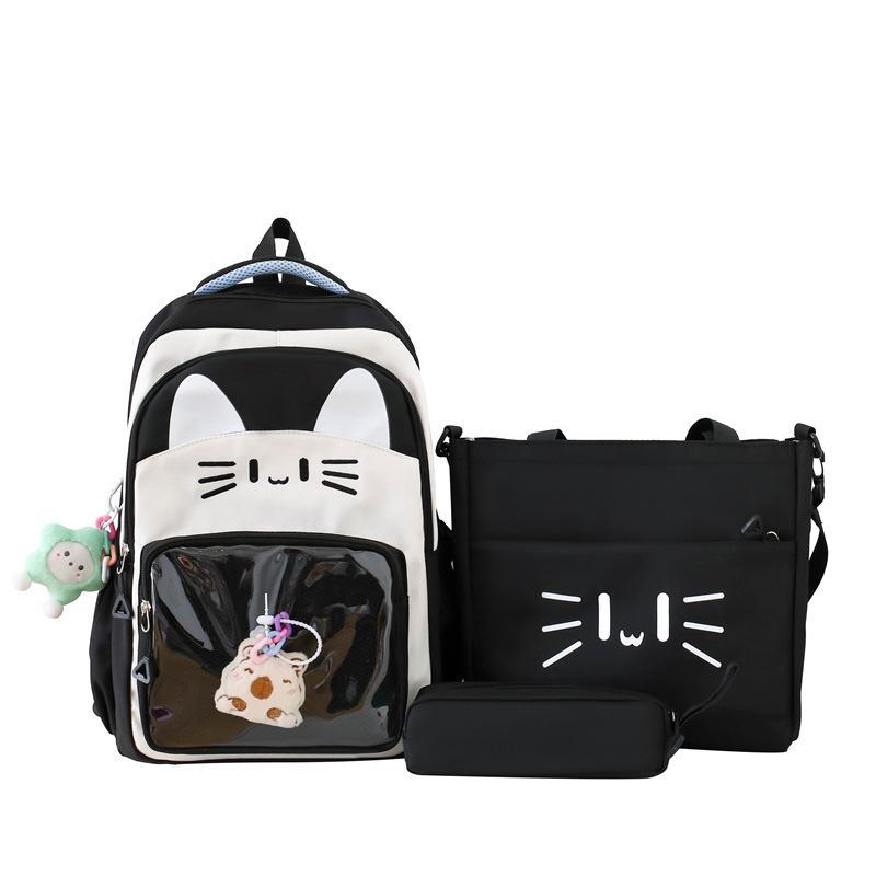 Школьный рюкзак милый мультяшный кот большой вместимости школьный рюкзак для учеников начальной школы и учеников средней школы backpack + handbag + pencil case чёрный