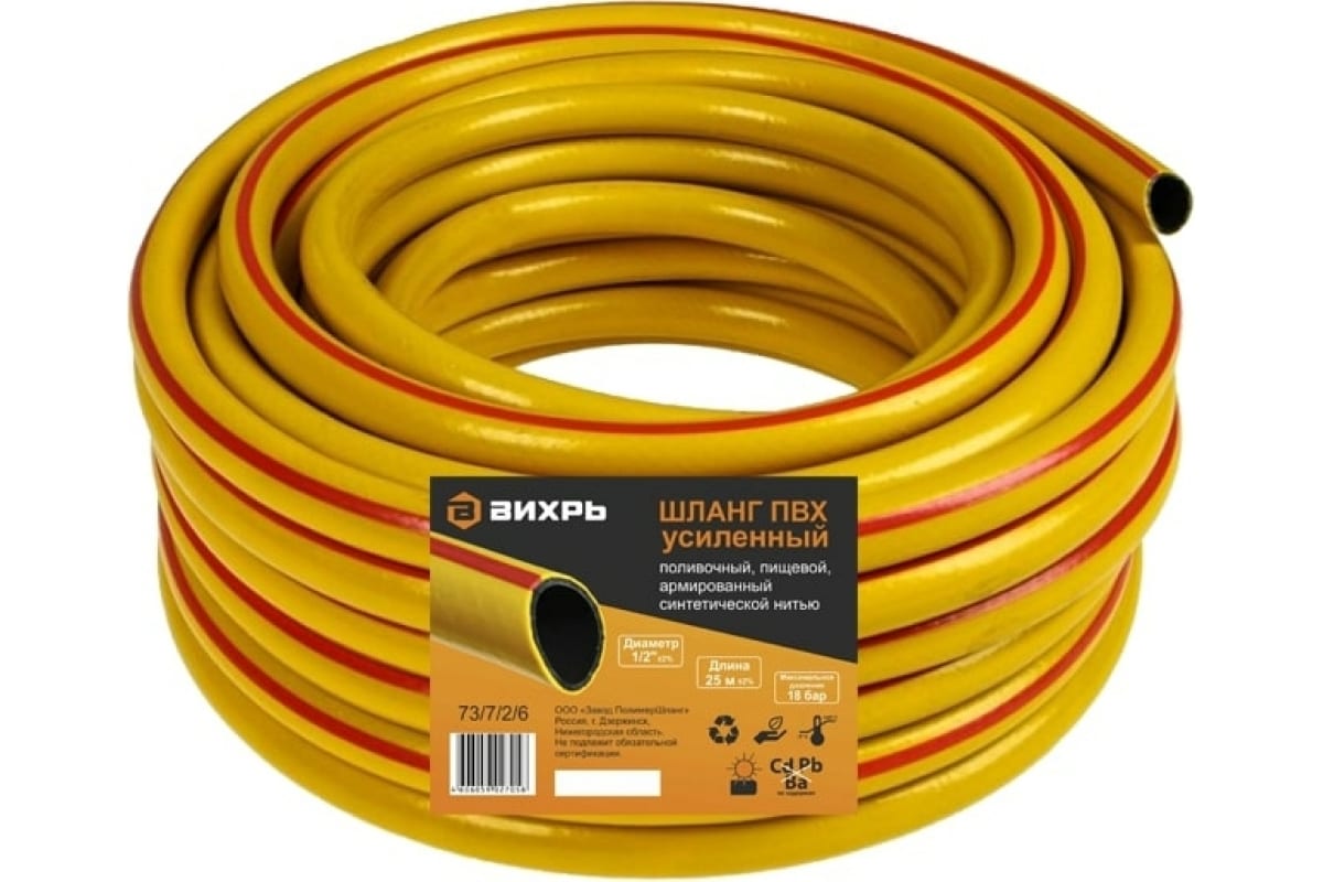 Шланг Вихрь, ПВХ, поливочный, армированный, d = 1/2" (13 мм), 25 м, 17.8 атм (73/7/2/6)
