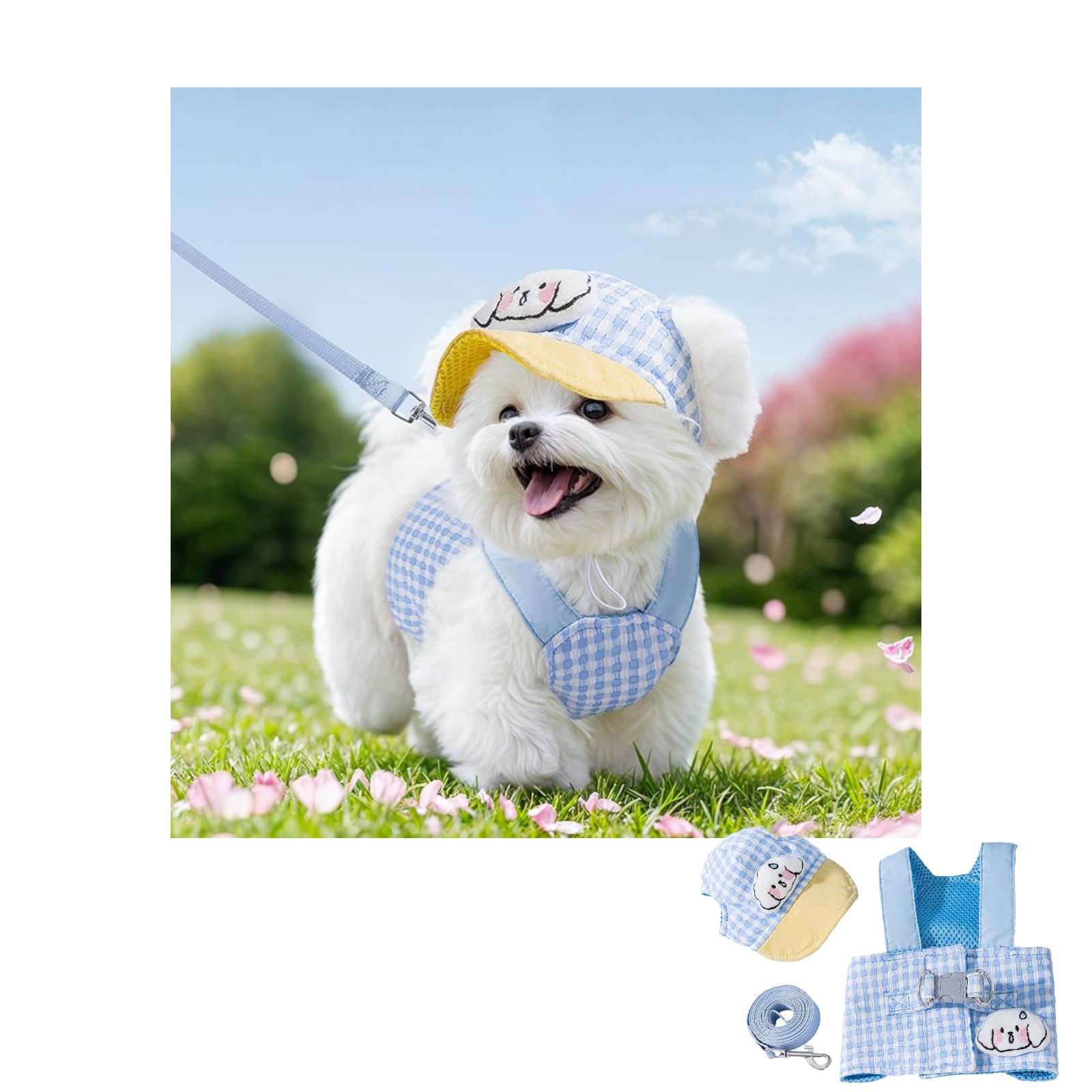Шлейка для собак Ursprung и поводок для маленьких милых шлеек с солнцезащитой для кошек Двойной тяговый Без собаки Легко надевать и снимать Ручной Домашнее животное Маленький и средний