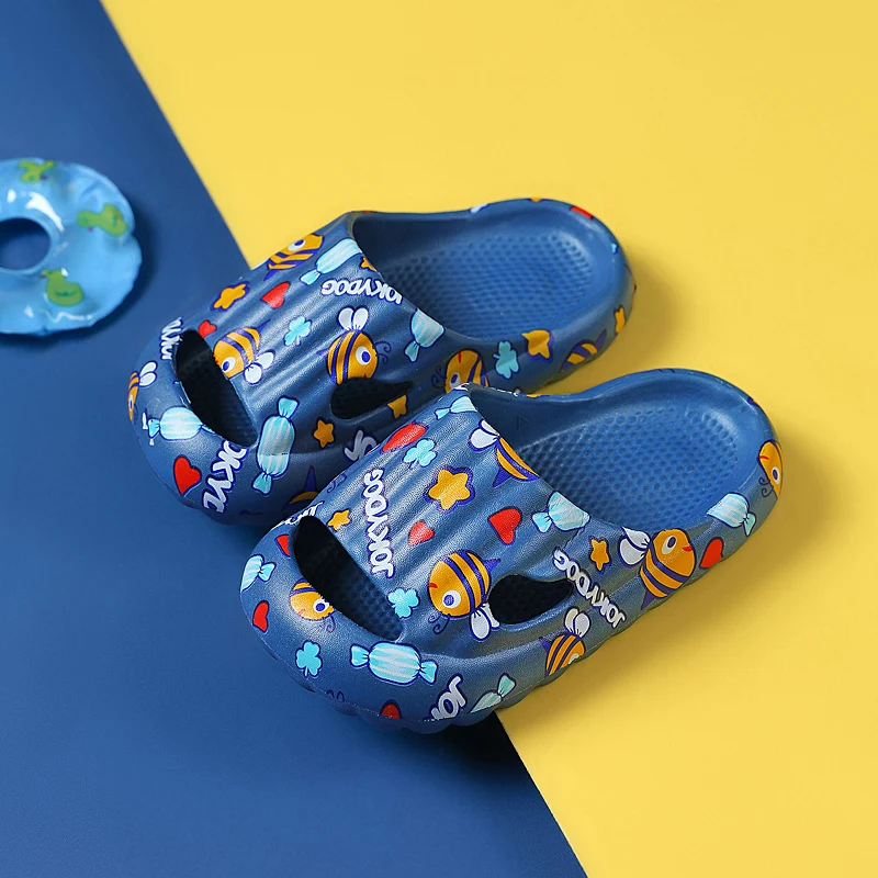 Шлепанцы для мальчиков и девочек, сланцы, летняя пляжная удобная обувь из ЭВА, мультяшный домик пчела, толстая подошва, для мальчиков и девочек