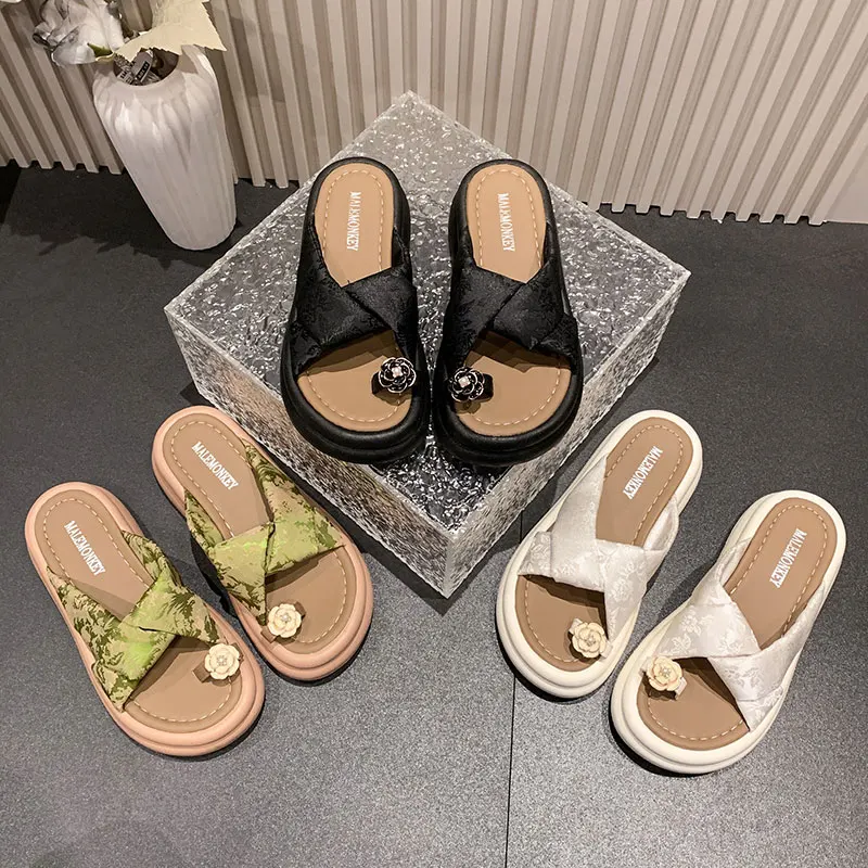 Шлепанцы домашние женские на платформе, сланцы, пляжные тапочки, новая модель, осень 2024