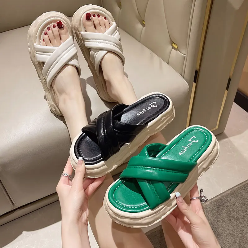 Шлепанцы женские для дома, Сланцы на платформе, пляжные тапки из экокожи, резина, низкая подошва, модная дизайнерская обувь в римском стиле, ...