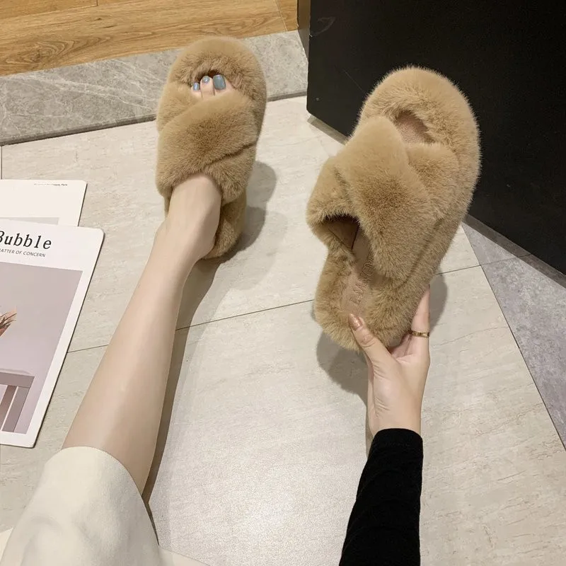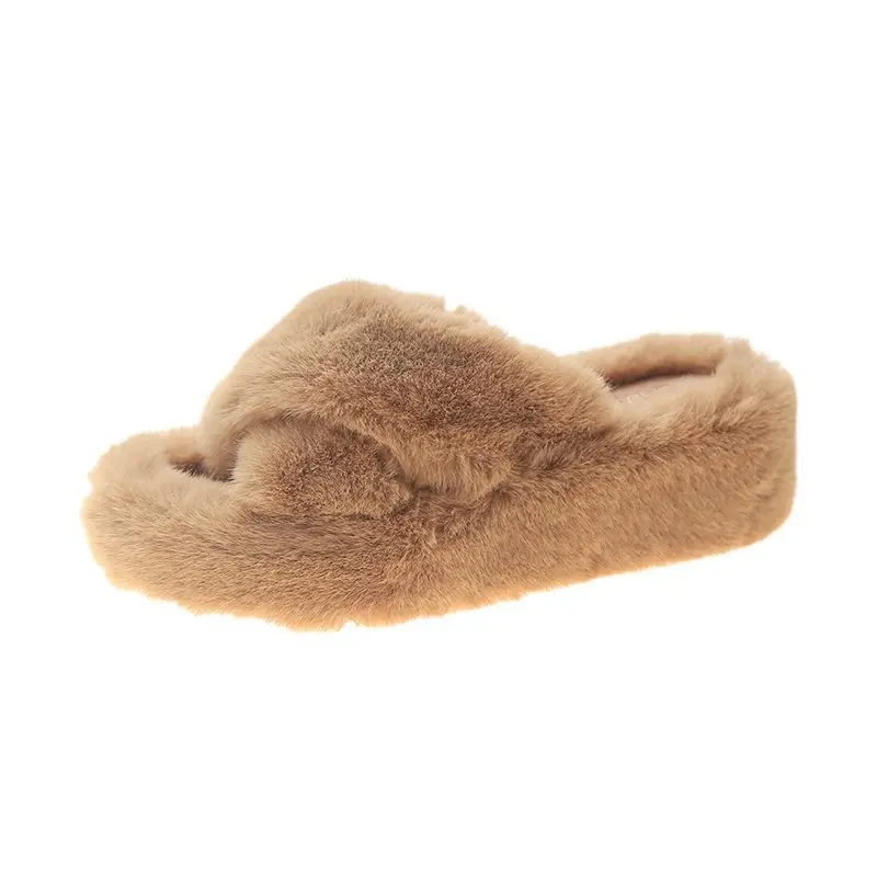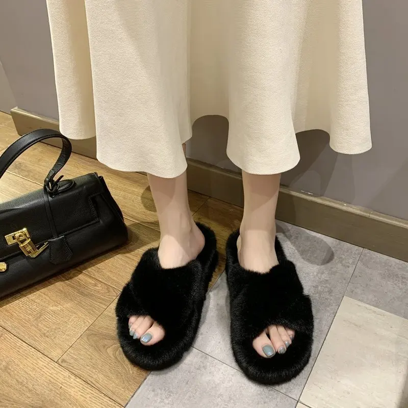 Шлепанцы женские домашние на платформе, роскошные сандалии на среднем меху, из флока, массажные, плюшевые, с мехом и резиновой подошвой, лето