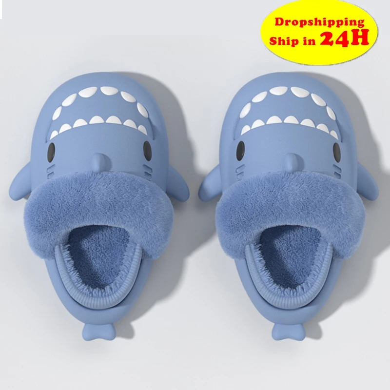 Шлепанцы женские/мужские водонепроницаемые Нескользящие, сланцы из ЭВА, плотная подошва, в форме облака акулы, теплые зимние Смешные шлепан...