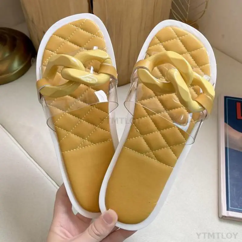 Шлепанцы женские на плоской подошве, мягкие сандалии с цепочкой, удобная Роскошная пляжная обувь для дома, летняя модель 2021