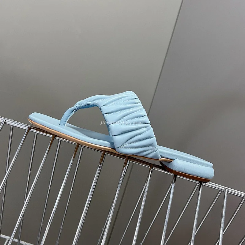 Шлепанцы женские на плоской подошве, пикантные сандалии, уличная мода, простые кожаные сланцы с разрезом, для отдыха, пляжа, летняя модель 2024