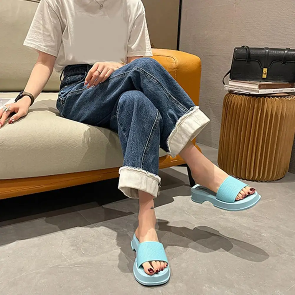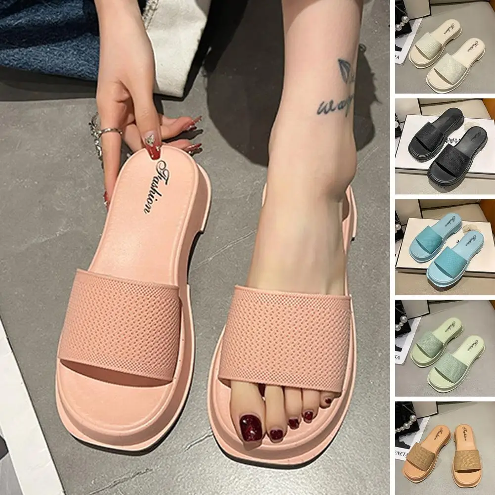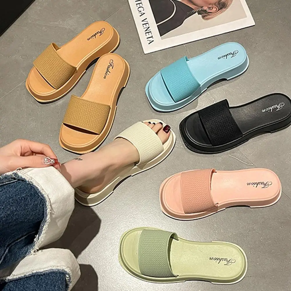 Шлепанцы женские на толстой платформе, мягкие сланцы, пляжные Нескользящие, с пряжкой, мягкая подошва, сланцы, летние тапочки, 2023
