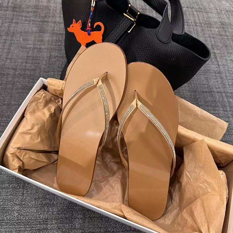 Шлепанцы женские носят новые стразы пляжные крутые тапочки летом, плоская подошва пальцы 41 абрикосовый