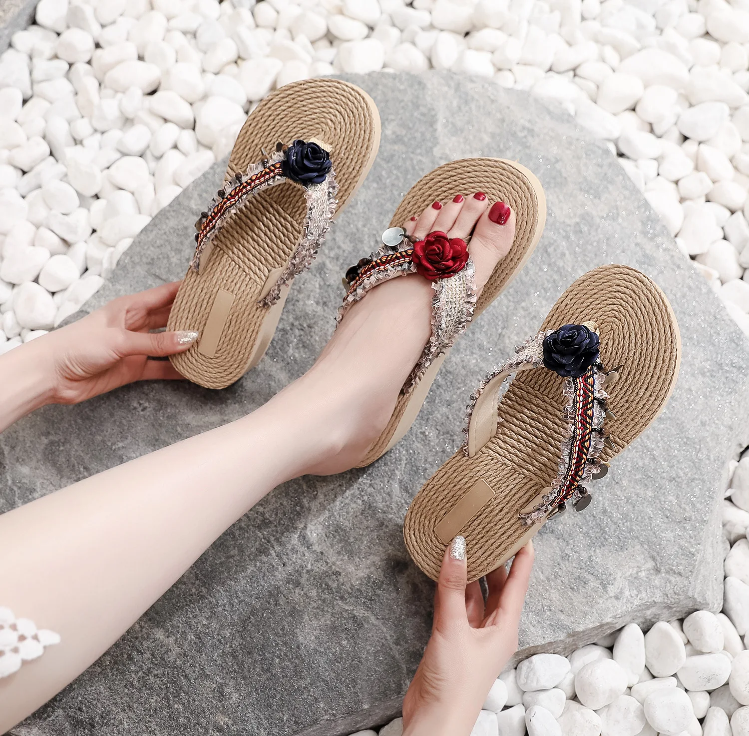 Шлепанцы женские резиновые, пляжная обувь, домашние тапочки, на платформе, слайдеры с низким цветочным узором, Роскошные, гавайский сабо, ди...
