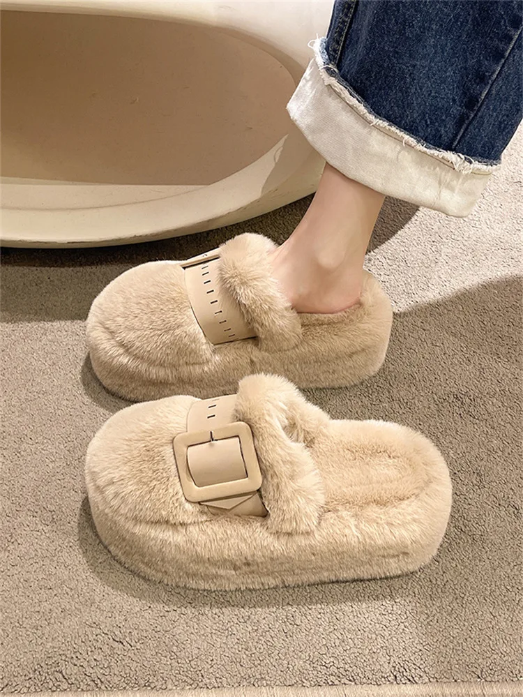 Women's sandals Thick Sole Plush Slippers Women Round Toe Hairy Home One Word Drag Casual Flat Heels Shoes Lazy Slippers Female