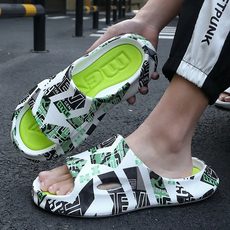 Шлепанцы мужские из ЭВА, мягкая подошва, для дома, летние тапочки, скользящие сандалии с принтом Мужская пляжная обувь, шлепанцы, большие размеры 46, 2023