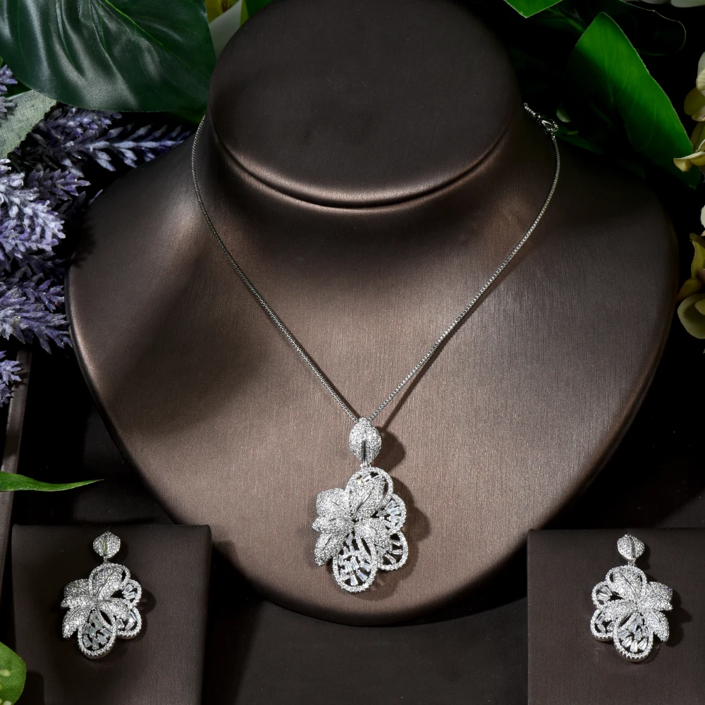 Fashion Charm Flower Pendientes Earring Sets Korean Style White Gold Color Color Bridal Jewelry Sets bijoux femme N-1691