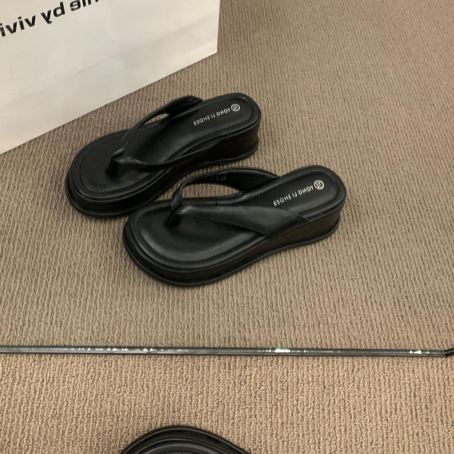 Шлепанцы на толстой подошве, женская обувь, лето 2025, корейская версия, каблук-носок с наклоном, пляжная юбка, классные тапочки 39 чёрный