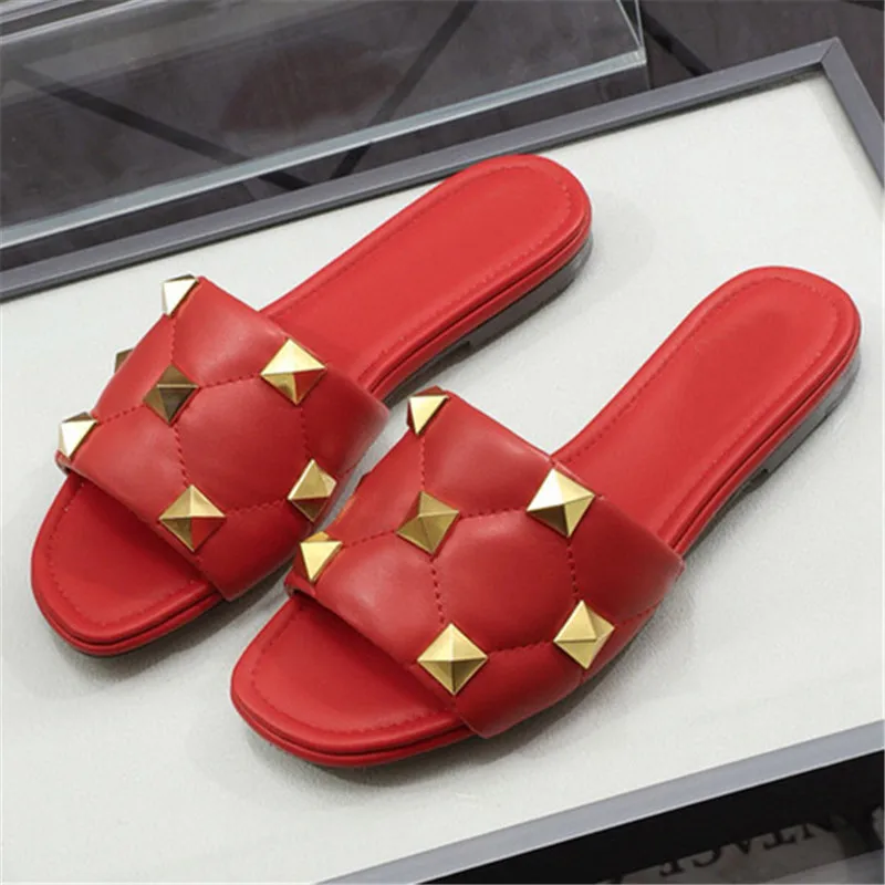 Шлепанцы Hjwsfdcai женские на плоской подошве, натуральная кожа, без застежки, с заклепками, открытый носок, мюли, сланцы, пляжная обувь для отпус...