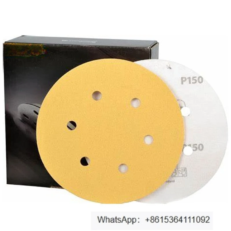 Шлифовальная карта, 6 дюймов, наждачная бумага с 6 отверстиями, желтая песочная сухая наждачная бумага, 150 мм, круглая флокированная шлифовальная бумага, золото