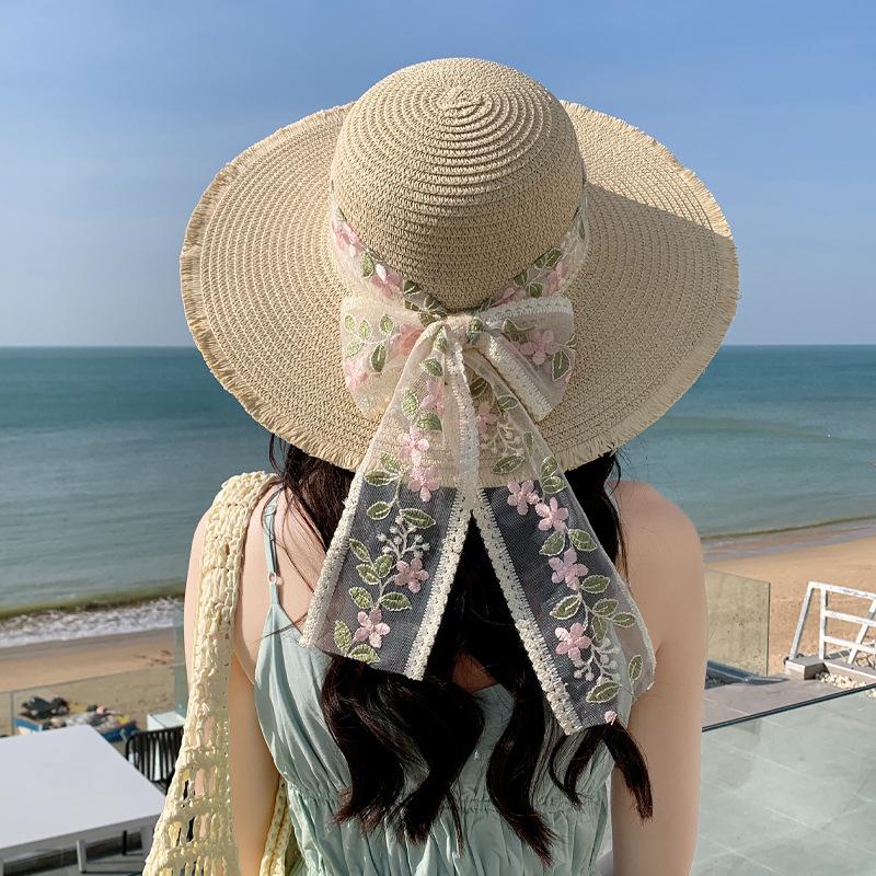 Шляпа Женская Летняя Сяоцин Соломенная Шляпа Повседневная Ленточная Пляжная Шляпа Отпуск Тень Солнцезащитная Шляпа Бант Солнечная Шляпа One Size