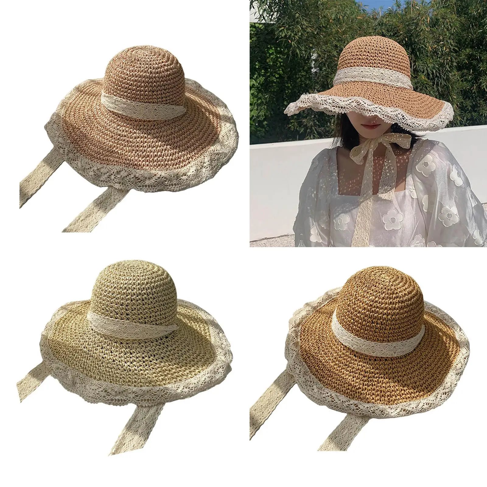 Шляпа Женская Солнцезащитная Складная, Соломенная Панама с широкими полями и цепочкой, с защитой от солнца, для пляжа, летняя