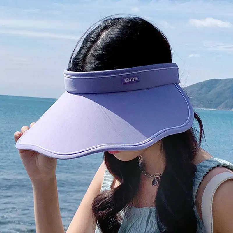 Шляпа Женская Солнцезащитная с широкими полями, модная пляжная кепка с волнистыми краями и защитой от УФ излучения, регулируемый эластичный пояс, большой размер, летняя