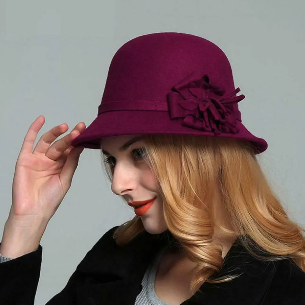 Шляпа-«Колокол» Женская, винтажная фетровая Панама с цветами, элегантная теплая шапка-«котелок» из искусственной шерсти, для праздника, Осе...