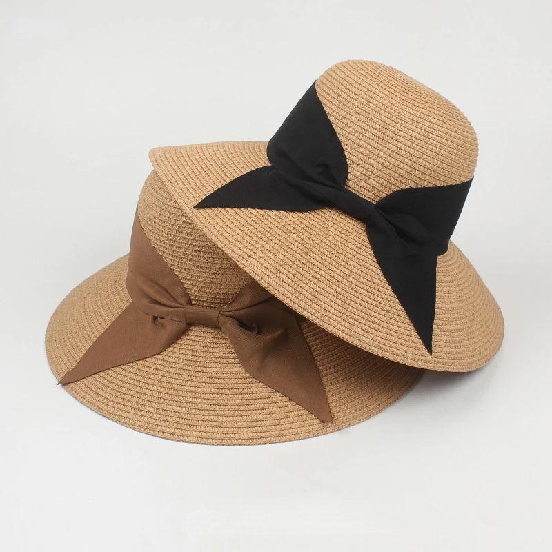 Шляпа Соломенная женская с широкими полями, складная Федора с завязкой-бантом, Пляжная солнцезащитная, летняя