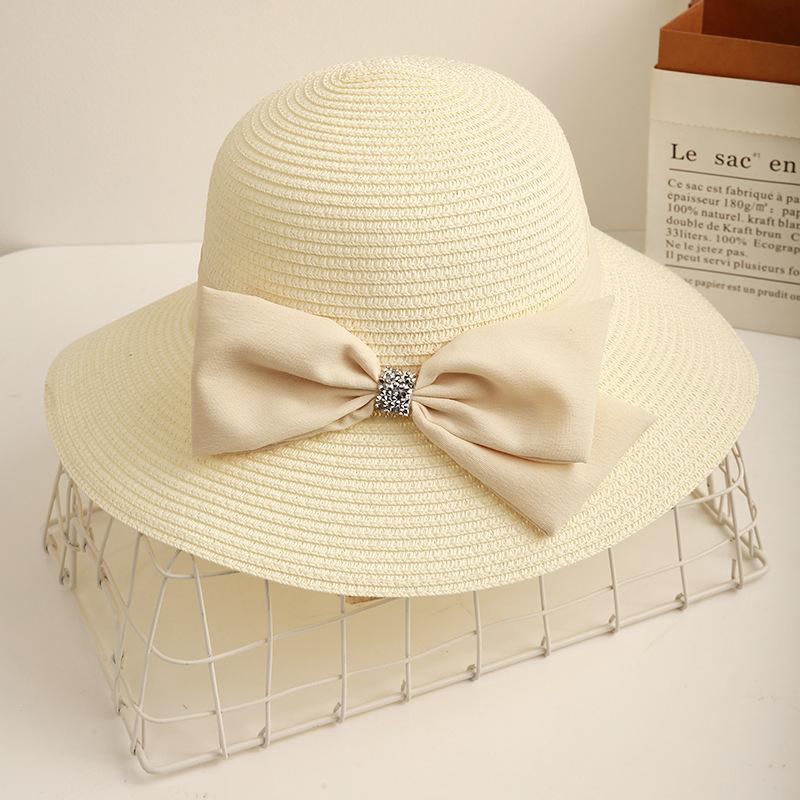Шляпа Универсальный Стиль Соломенная Плетеная Милый Бант Женская Защита от Солнца Панама белый
