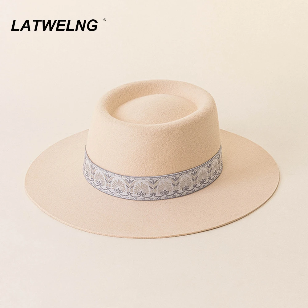 Шляпа Федора женская с вышивкой и лентой, роскошная дизайнерская винтажная Свадебная шапка, элегантная теплая шерстяная шляпа для церкви, б...