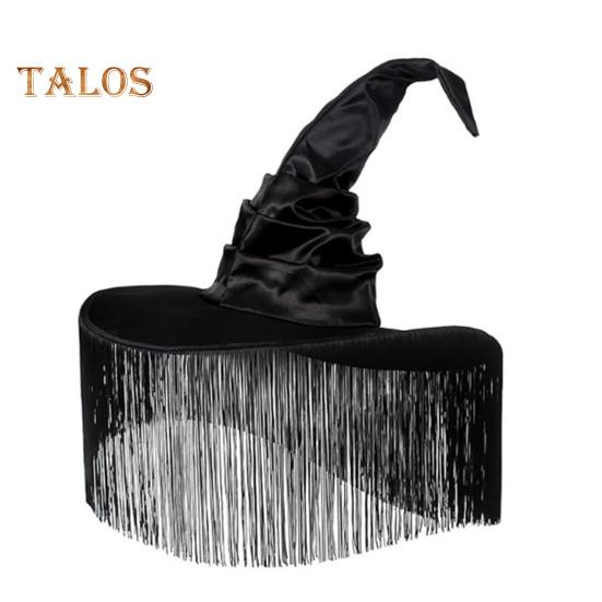 Шляпа ведьмы на Хэллоуин с заостренной кисточкой, декоративная черная, темная, в стиле с большими полями, головной убор для маскарада, карнавала, представления, фото-реквизита чёрный
