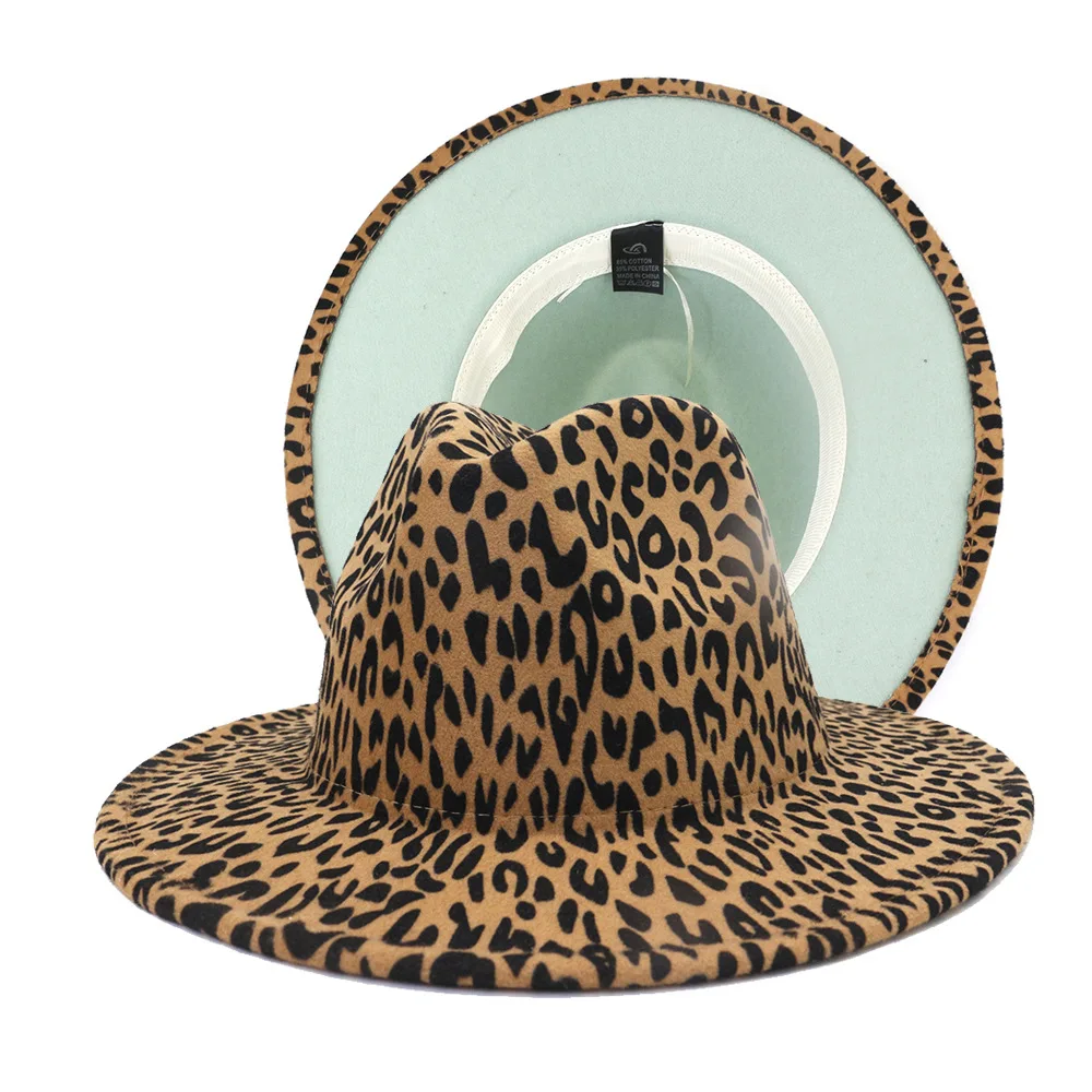 Шляпа в стиле пэчворк Мужская, шерстяная Федора с леопардовым и мятно-зеленым принтом, широкополая церковная Панама, джазовая вечерние ПА д...
