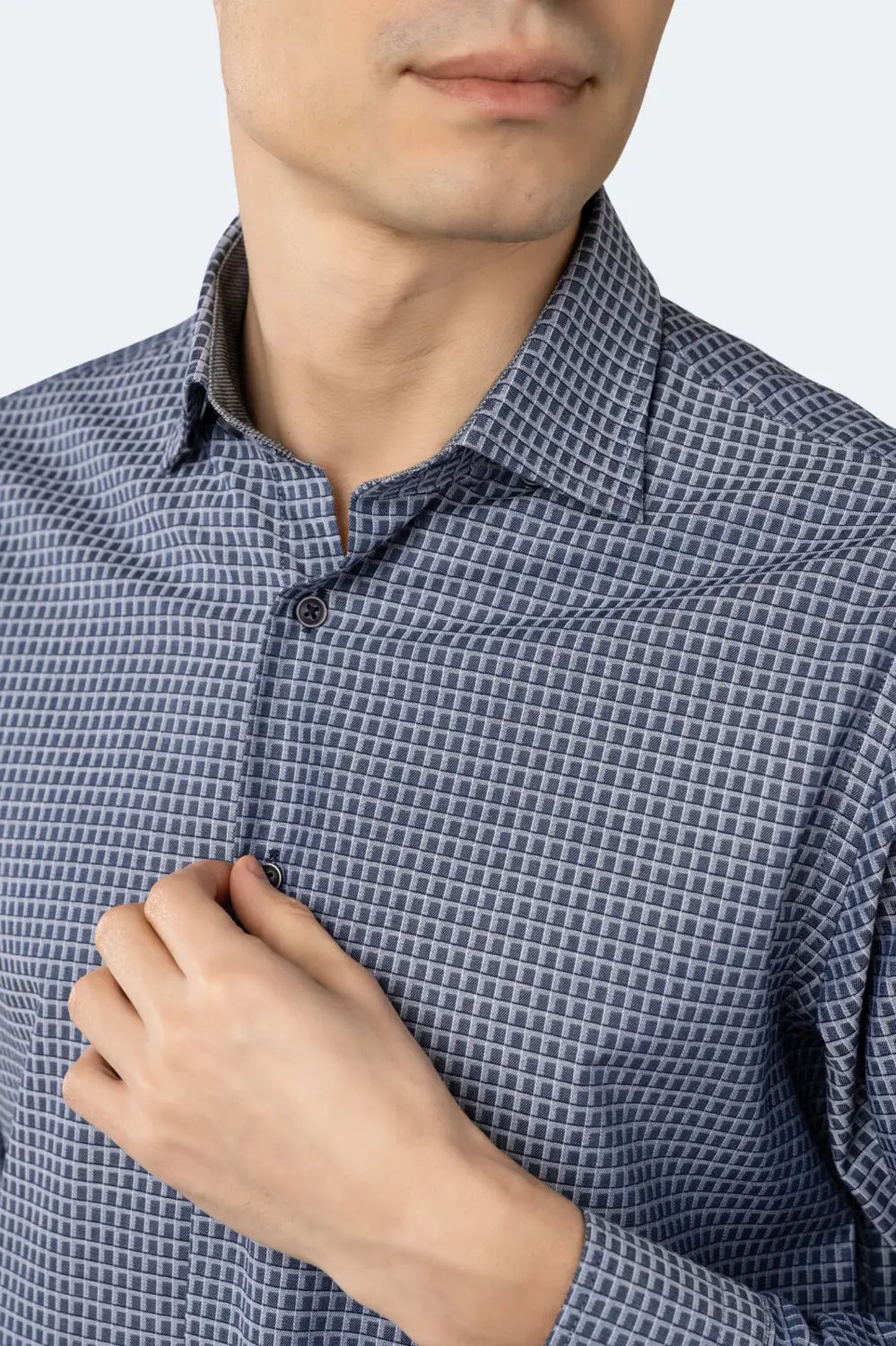 Темно-синий и серая жаккардовая рубашка в клетку Luchiano Visconti, мультиколор
