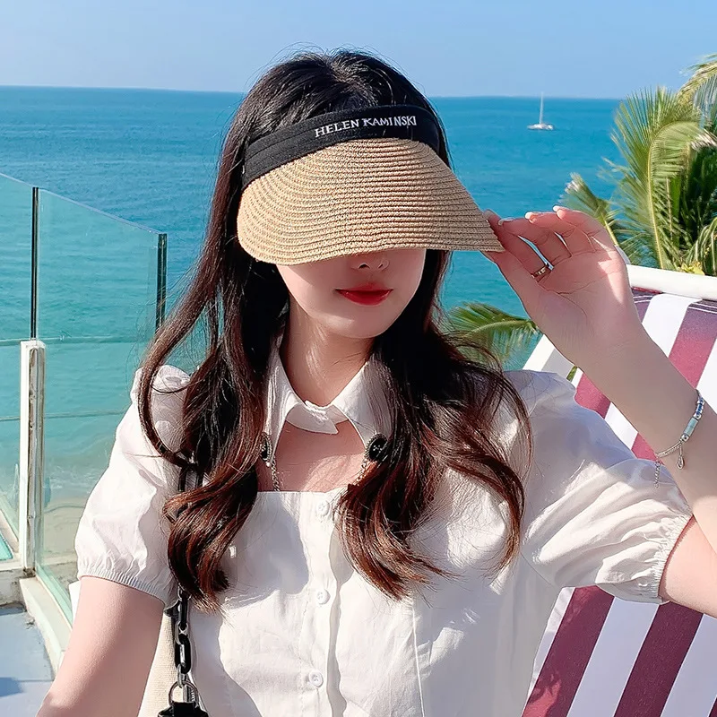 Шляпа женская Соломенная с защитой от УФ-лучей, Панамка от солнца ручного изготовления в Корейском стиле, пустая верхняя пляжная шапка, S76, л...