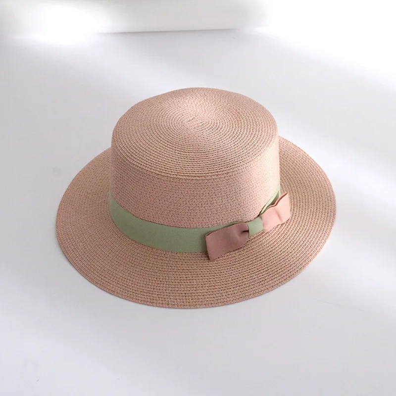 Шляпа женская Соломенная с лентой и бантом, модная повседневная Пляжная Панама с плоским верхом, с защитой от УФ излучения, лето