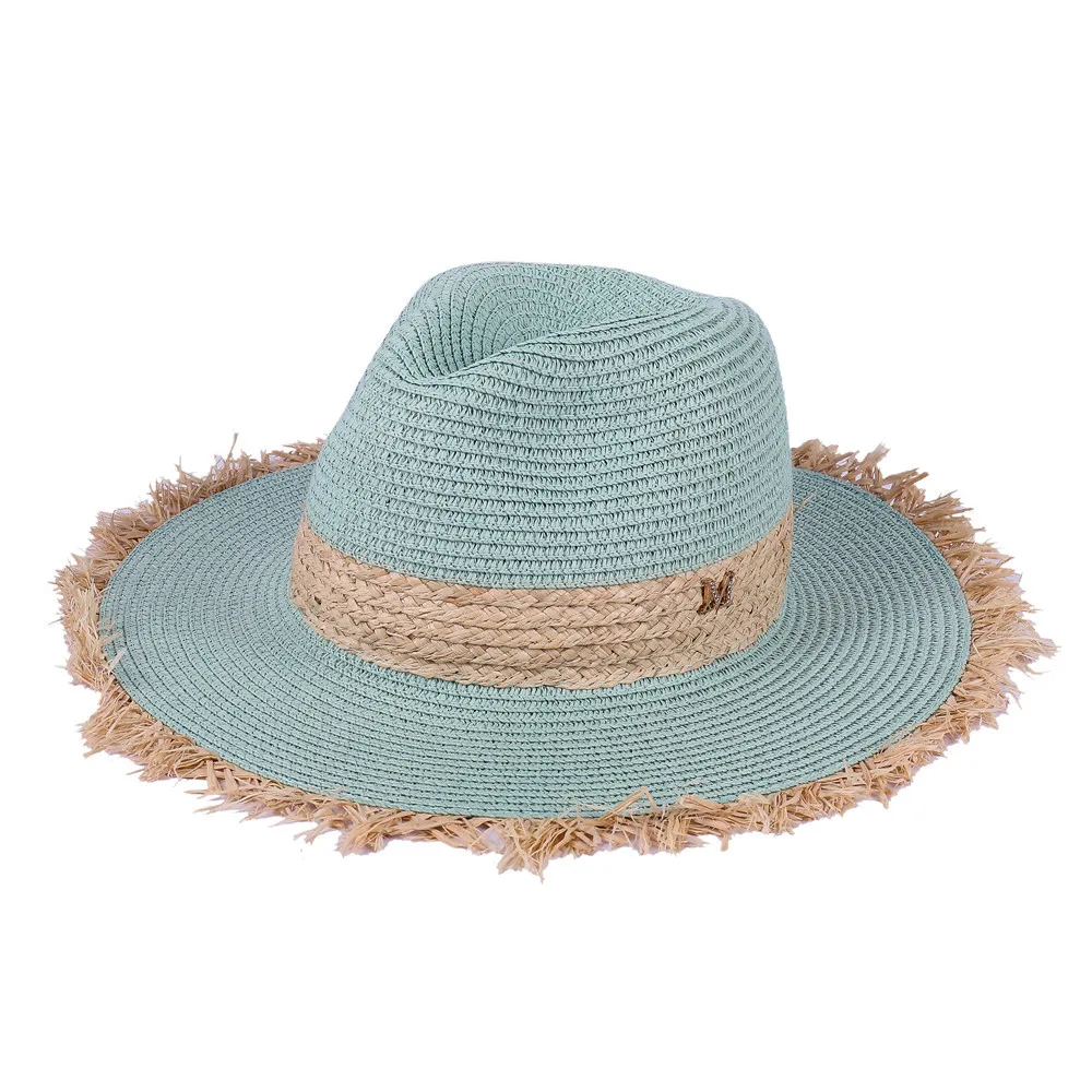 Шляпа женская Соломенная с широкими полями, модная цветная шапка с плетением-краской, уличная дорожная пляжная Солнцезащитная Федора, винтажная Повседневная элегантная, на лето